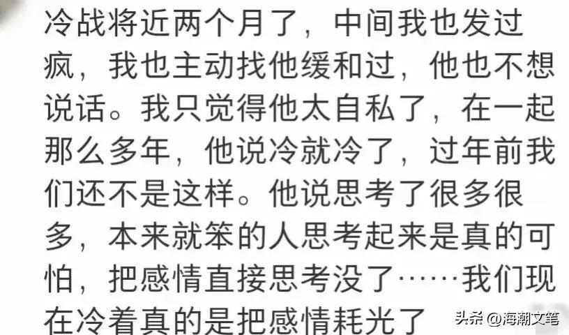 17. 冷戰(zhàn)近兩月,中間努力緩和他還不說(shuō)話,這感情怕是要涼透了。