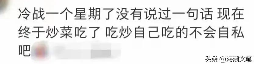 13. 冷戰(zhàn)一星期自己炒菜吃,不自私,自己照顧自己挺好的。