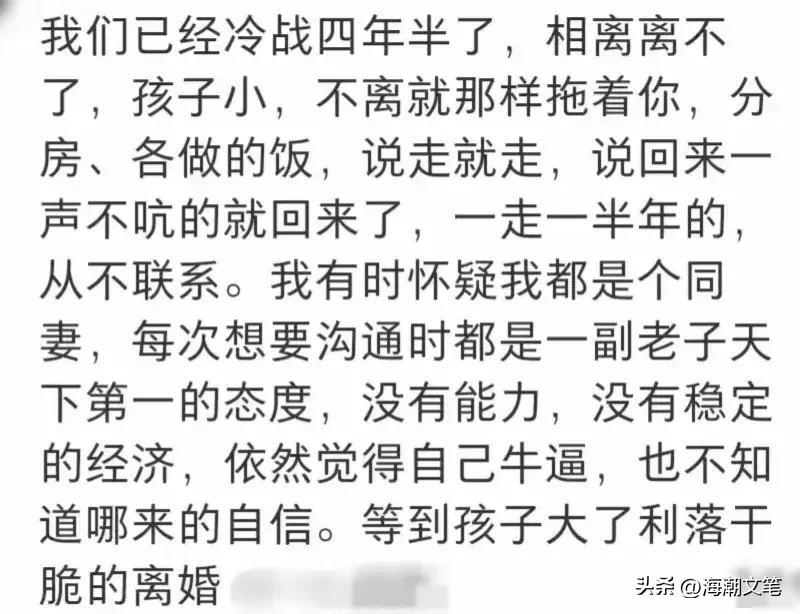 7. 冷戰(zhàn)四年半還拖著,他那么拽,等孩子大了就趕緊離吧。
