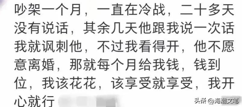 16. 冷戰(zhàn)一個(gè)月,他不愿離婚就給錢,你想得開,這樣也不錯(cuò)。