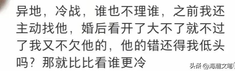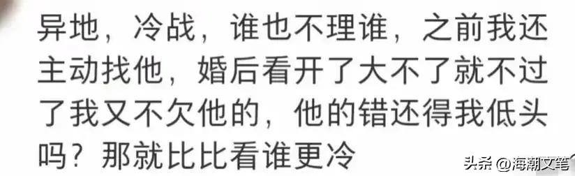 3. 異地冷戰(zhàn),你婚后看開不低頭很明智,看誰(shuí)更能熬。