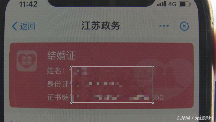 近日,電子結(jié)婚證推出后,不少市民都很好奇,電子結(jié)婚證究竟長什么樣呢?今天上午,已婚市民徐先生試驗(yàn)了一下。從打開支付寶,搜索"江蘇政務(wù)",到人臉識(shí)別,進(jìn)行授權(quán)綁定成功,整個(gè)過程不到一分鐘,最終頁面出現(xiàn)了和紙質(zhì)證書相對(duì)應(yīng)的電子結(jié)婚證。