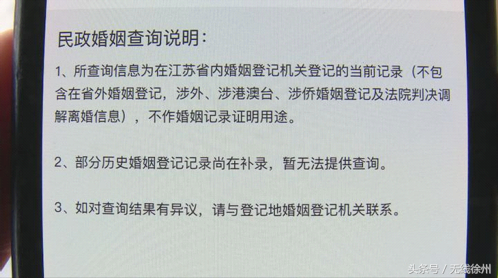 據(jù)介紹,市民可以查詢本人最近一條婚姻登記電子記錄,但不包含在江蘇省外婚姻登記,涉外、涉港澳臺(tái)、涉僑婚姻登記以及法院判決調(diào)解離婚信息。記者還了解到,由于部分歷史婚姻登記記錄尚在系統(tǒng)補(bǔ)錄中,若暫未查到,請不要著急,全省各地婚姻登記機(jī)關(guān)正根據(jù)檔案在抓緊有序補(bǔ)錄中。