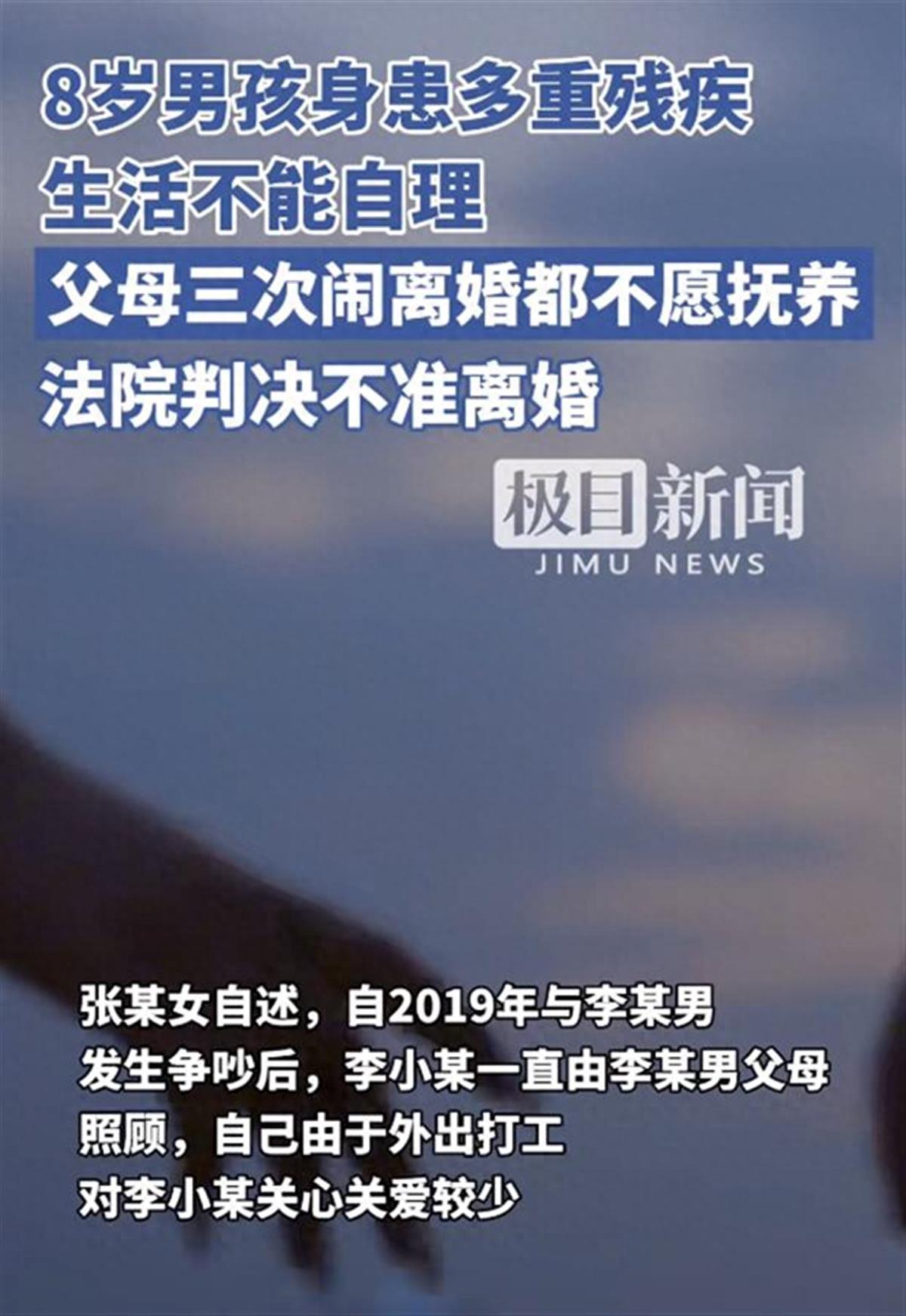 “法院怎么判我都接受,但是孩子交給他媽媽撫養(yǎng)就行,我可以每個(gè)月給撫養(yǎng)費(fèi)!”8歲男孩身患多重殘疾,生活不能自理。父母三次起訴鬧離婚,夫妻雙方都不愿意撫養(yǎng)孩子,要求法院判給對(duì)方。